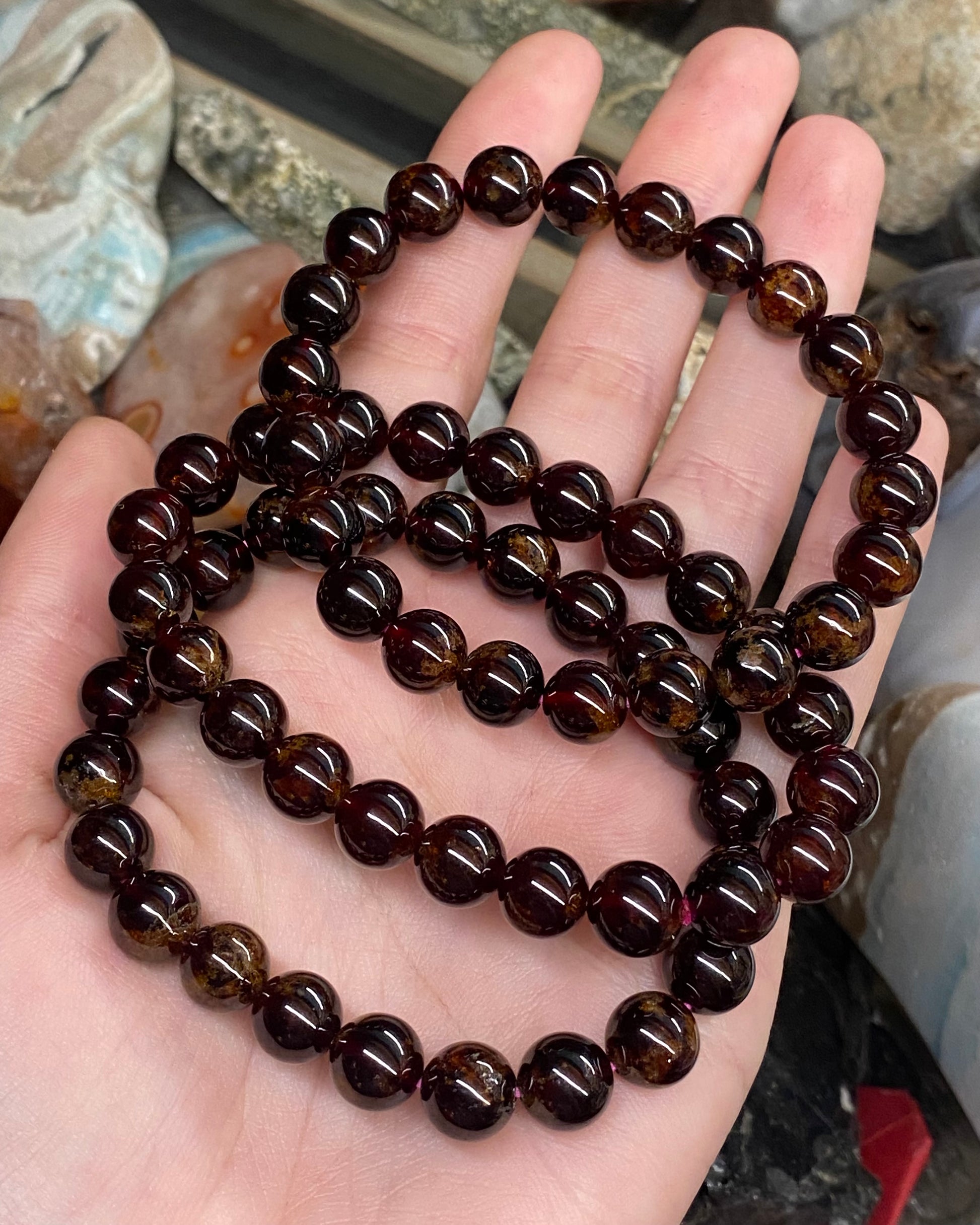 Il granato rosso è tradizionalmente considerato una pietra di vitalità, passione e forza interiore. La sua energia è intensa e radicante: viene spesso associata alla riattivazione dell’entusiasmo, del coraggio e della motivazione, soprattutto nei momenti di stanchezza emotiva o indecisione.